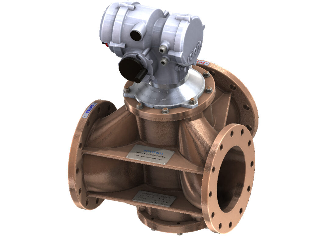 The 3-way valve body is of the standard Walton type and interchangeable with the bodies used for the range of self-acting valves. This means that it is a simple matter to convert a valve from self-acting or pneumatic to electric operation, and this can usually be achieved without removing the valve body from the system or modifying the pipework.