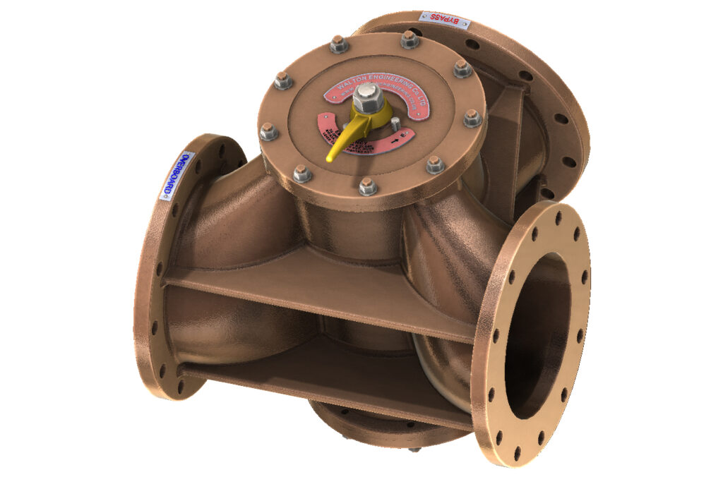 Walton valves may be installed to either mix fluids from two inlets and discharge through a single outlet (mixing), or to divide the flow from one inlet into two outlets (diverting).